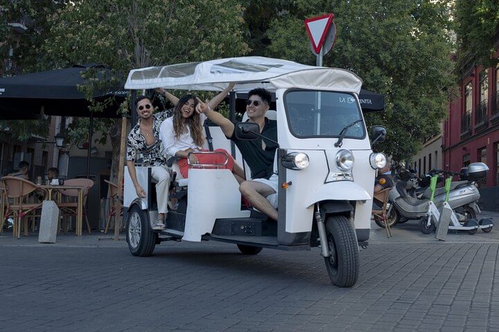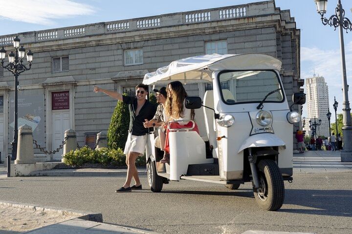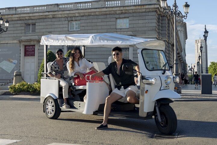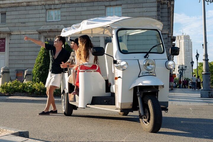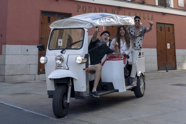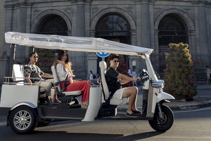 "Exclusive Panoramic Views of Madrid in Tuk Tuk with pickup"